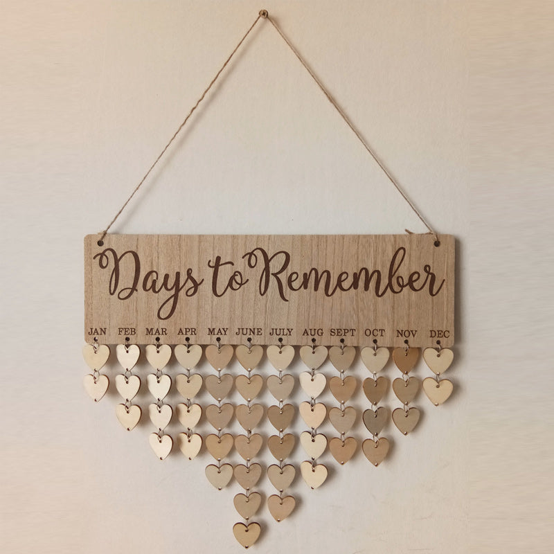 Write down the name and date on wooden plate, and then hung in the appropriate month, remind you never forget.