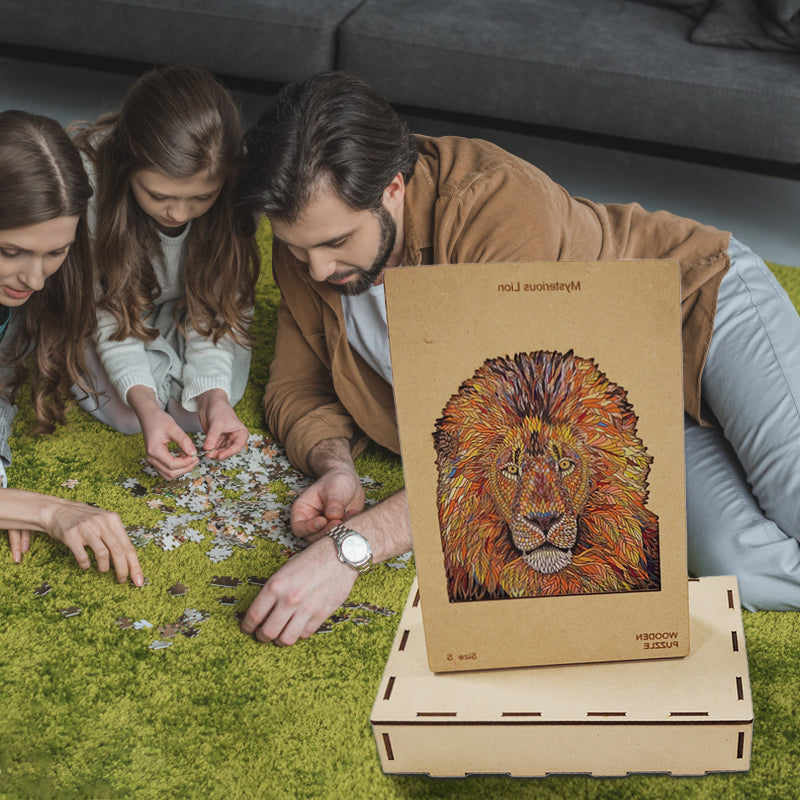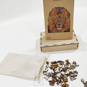 FANTASY THEMED PUZZLE SET - Enjoy a relaxing time with this Mysterious Lion puzzle! Available in 3 sizes, our wooden jigsaw puzzles are made up of pieces shaped various animals.