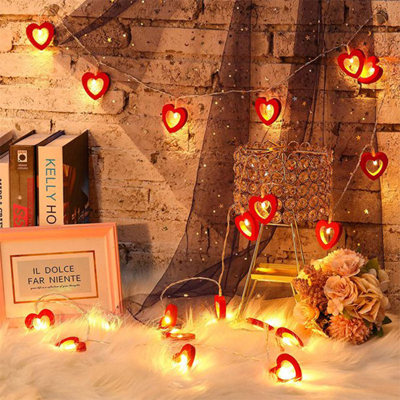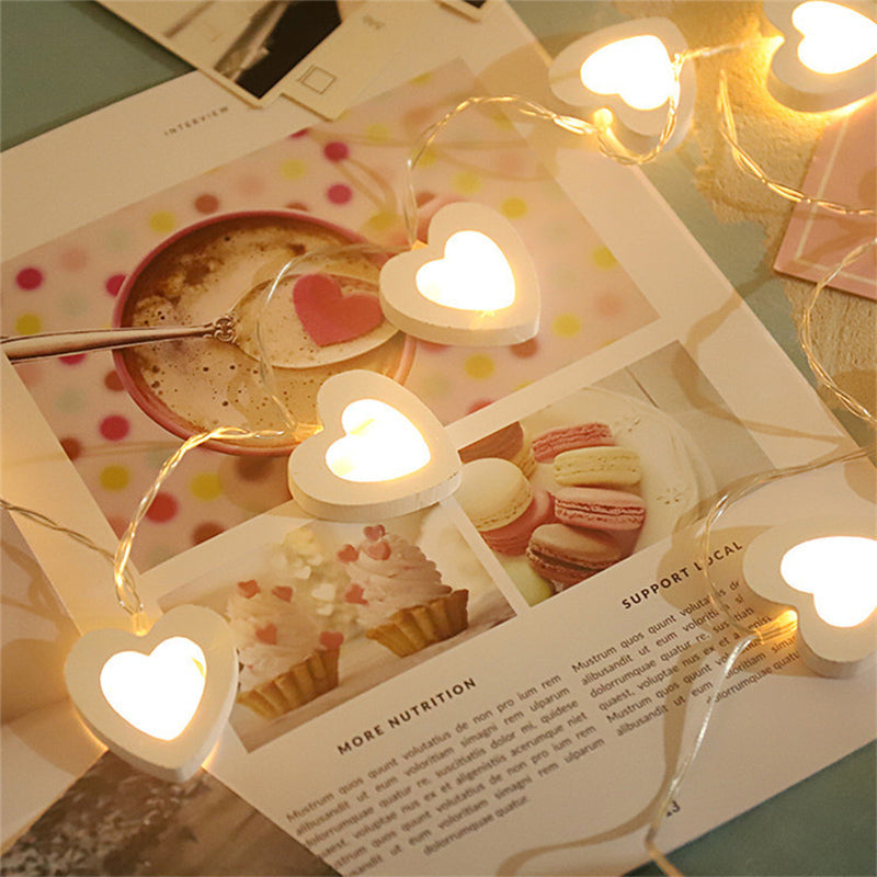 1 Set * Wooden Love Shaped Battery Lamp String Light