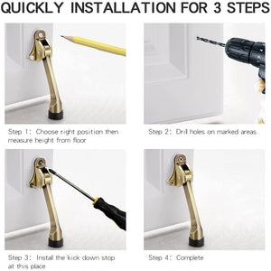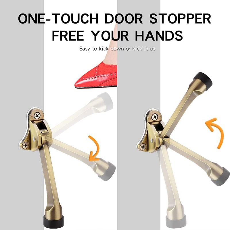 STYLISH PRACTICAL DESIGN — The kick down door stops in the up position to allow the door to open freely, spring design holds the stop in the up position, ribbed rubber foot is for positive holding, hold the door open at your will, to prevent damage to the wall.